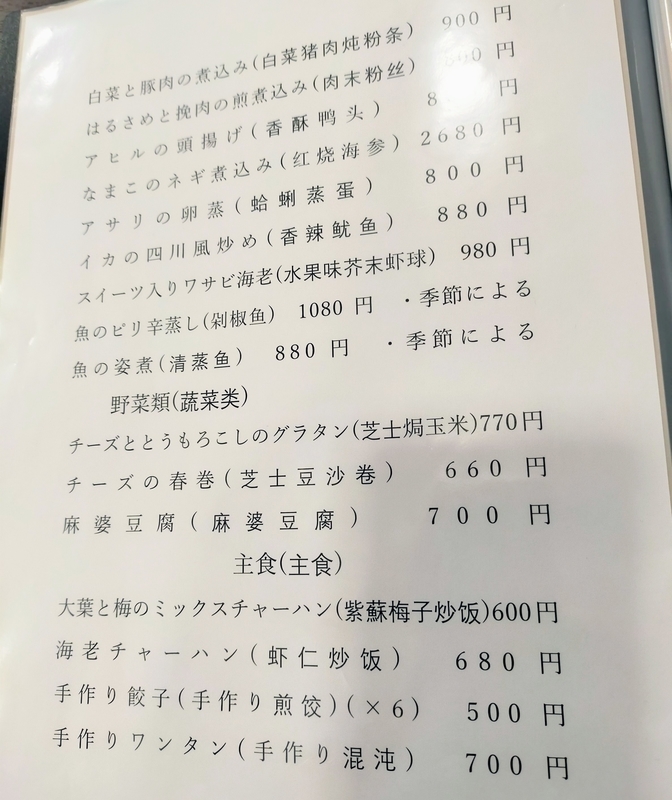 ちなみにメニューは日本語と中国語で併記されています。訪問時、他のお客さんはみな中国の方のようでした。お店の方には日本語が通じます。