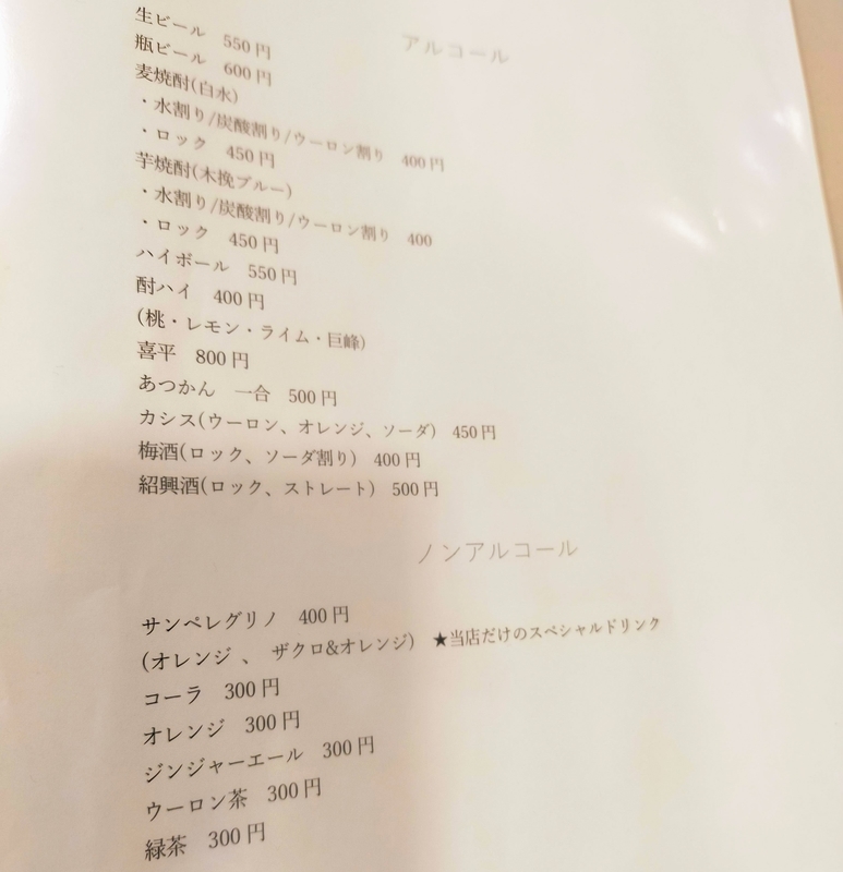ドリンクメニュー。紹興酒はありますが、ドリンクは割と普通の居酒屋メニュー風です。