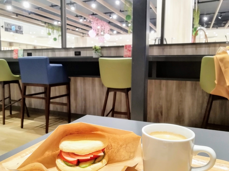 イングリッシュマフィンサンド ハムチーズ(380円)、ブレンドコーヒーHot(250円)、カフェラテHot(300円)