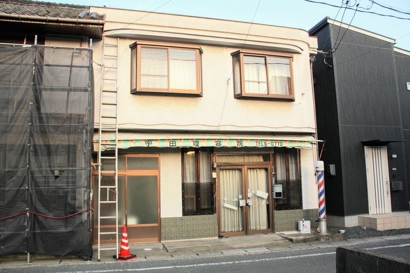 真っ直ぐだった通りが右に折れたところにあったレトロな理容院。2階の窓の上の小さなひさしがお洒落です。隣の工事のために立てかけられているのであろう梯子ですら、なんだか洒落てるように見えてます。