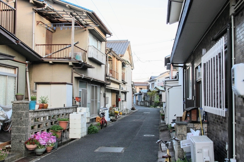 このあたりは家が建ち並び、道もそんなに広くなく下町のような雰囲気。笠岡湾が埋め立てられたおかげで、この場所は海から離れた内陸にあるように感じてしまいますが、こういうところを見ると昔は賑やかな港町だったんだろうな、と想像できます。