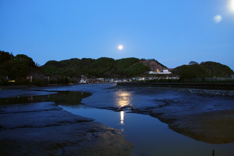 ちなみにこの日は満月。潮の引いた海にいい感じに月光が反射していました。