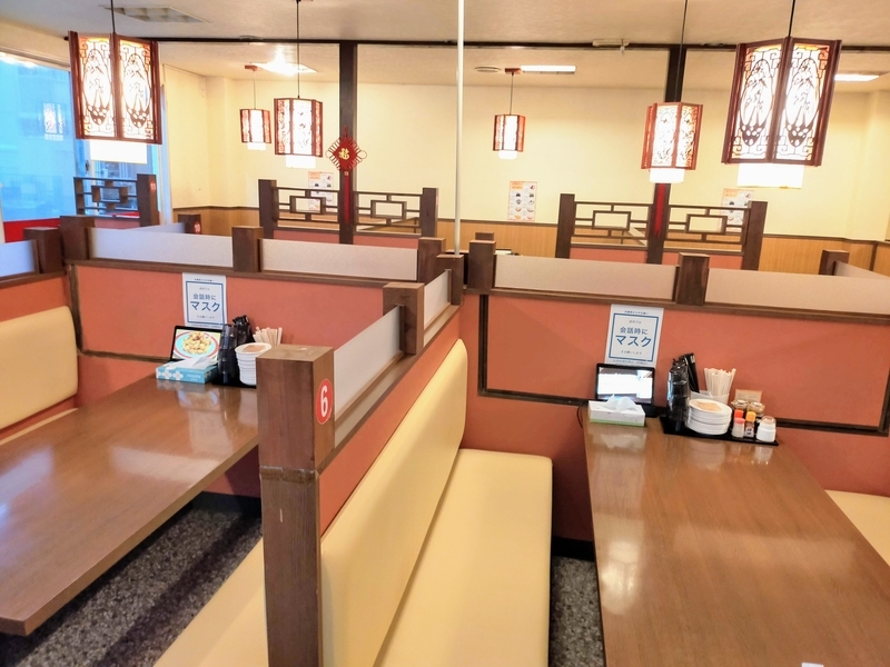 中国ぽいインテリアの店内。入って左側にボックス席が並んでいます。