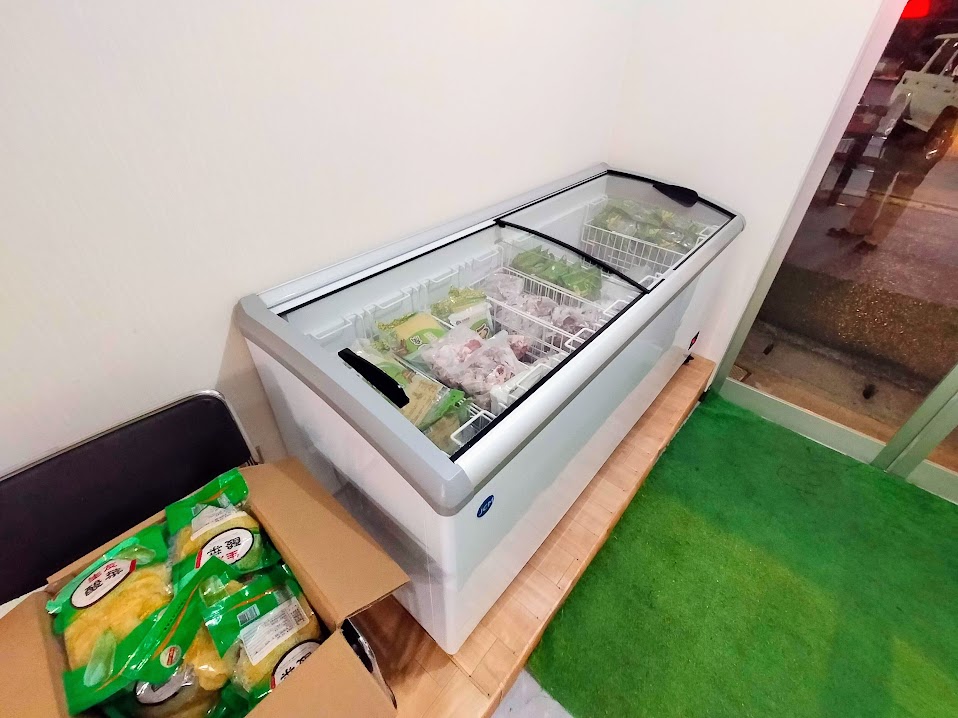 カウンター近くの空きが目立った冷蔵庫は、そのうちビールなどのお酒類を入れるつもりなのもしれません。