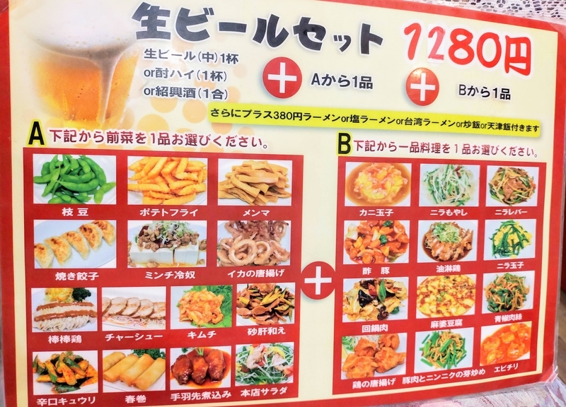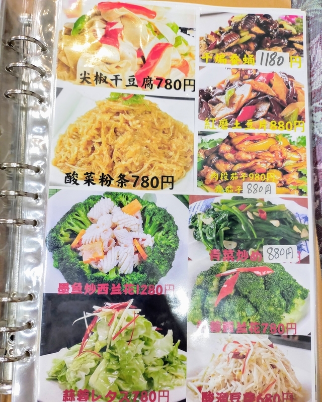 中国語で表記されているので漢字の雰囲気と写真から想像するしかありませんが、ガチな中華メニューが並んでいます。
