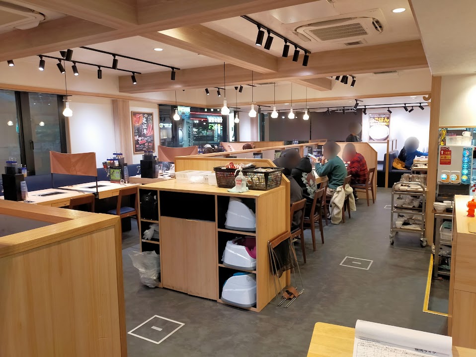 こちらは4人掛けのテーブルを中央で仕切った二人席。コンパクトな席ですが、荷物置きを用意してくれたりもするので、居心地は悪くありません。